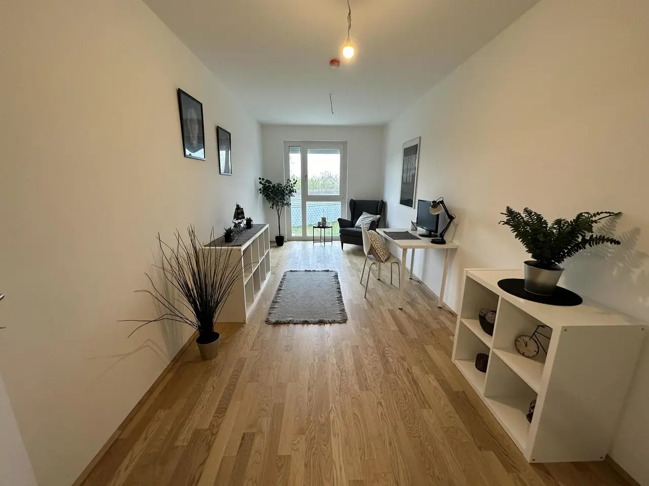Die Fenster und Fenstertüren erhalten einen außenliegenden Sonnenschutz in Form von Rollläden. Ein Garagenplatz steht ab € 120,00 zur Anmietung zur Verfügung.